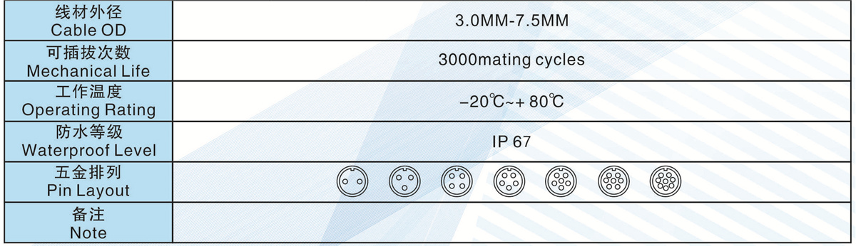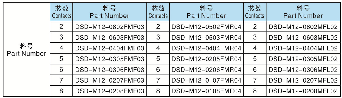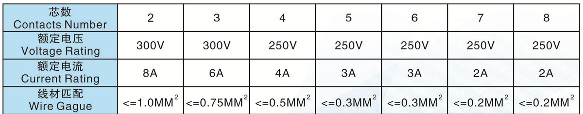 芯數(Contacts Number): 2 - 8芯