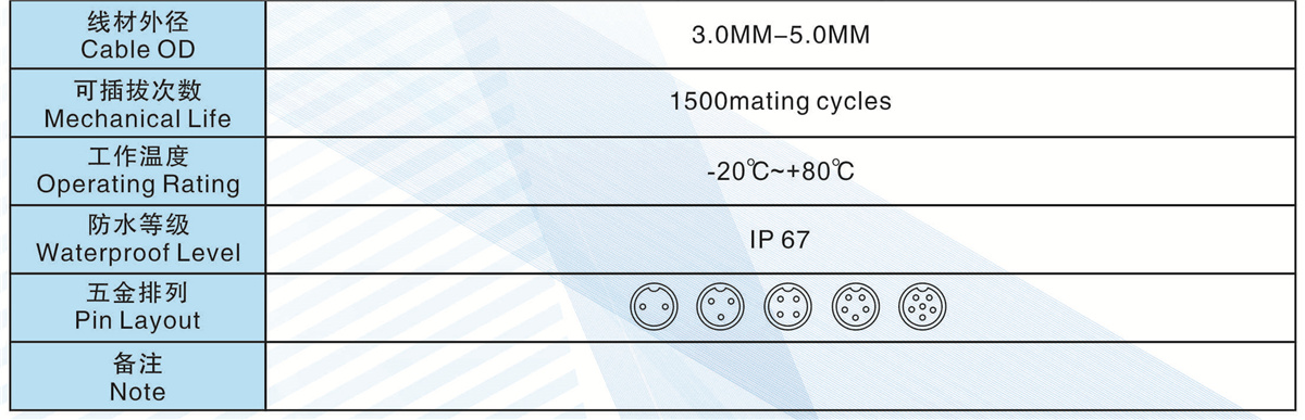 芯數(Contacts Number): 2 - 6芯