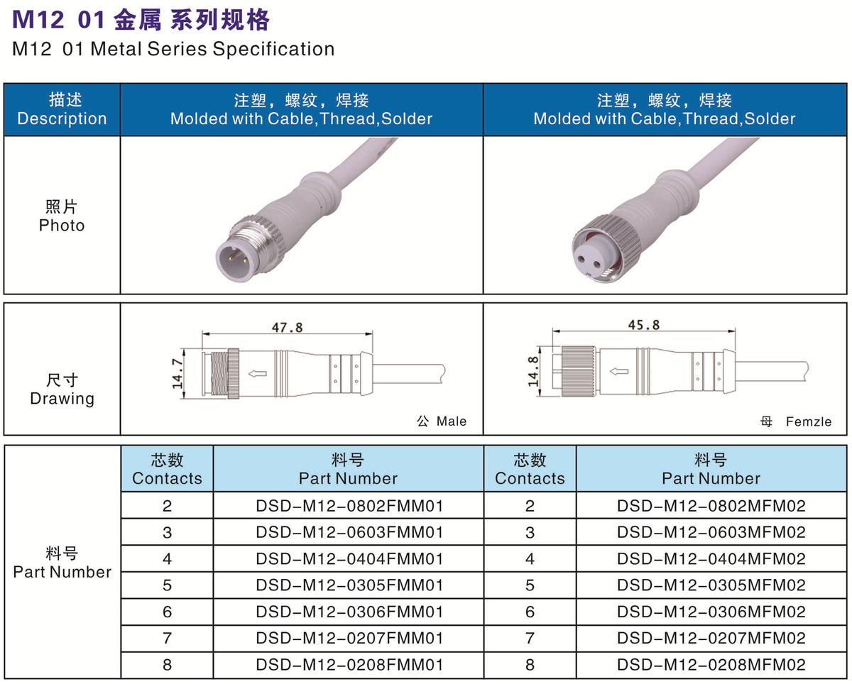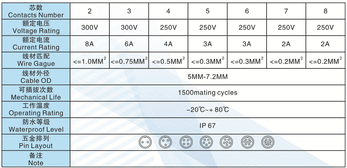 芯數(shù)(Contacts Number): 2 - 8芯