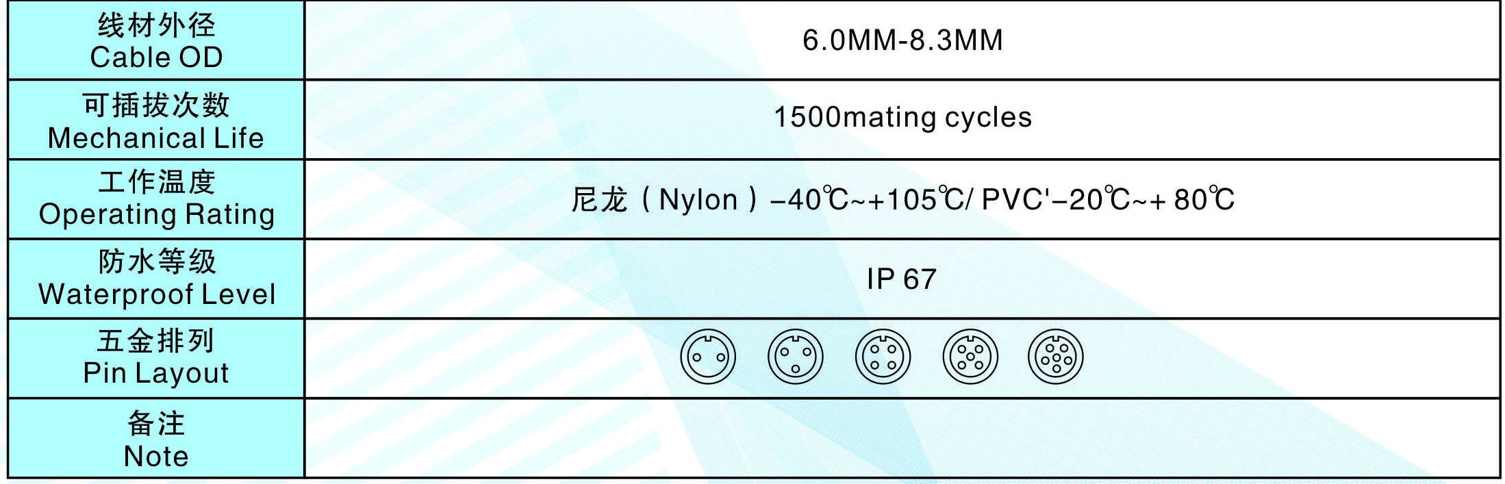 線材外徑(Cable  OD):6.0MM-8.3MM