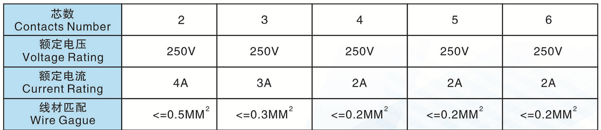 芯數(Contacts Number): 2 -6芯