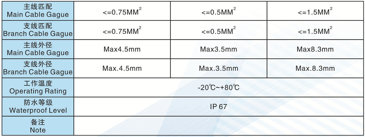 支線匹配(Branch Cable Gague):   <= 0.75MM2           <=0.5MM2            <=1.5MM2